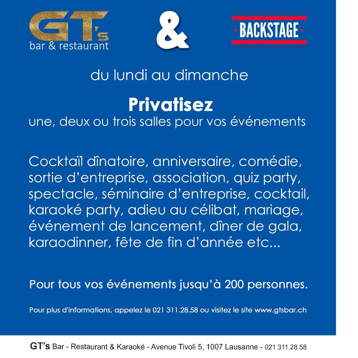 Contactez-nous au 021 311 28 58 ou www.gtsbar.ch pour discuter de vos besoins
