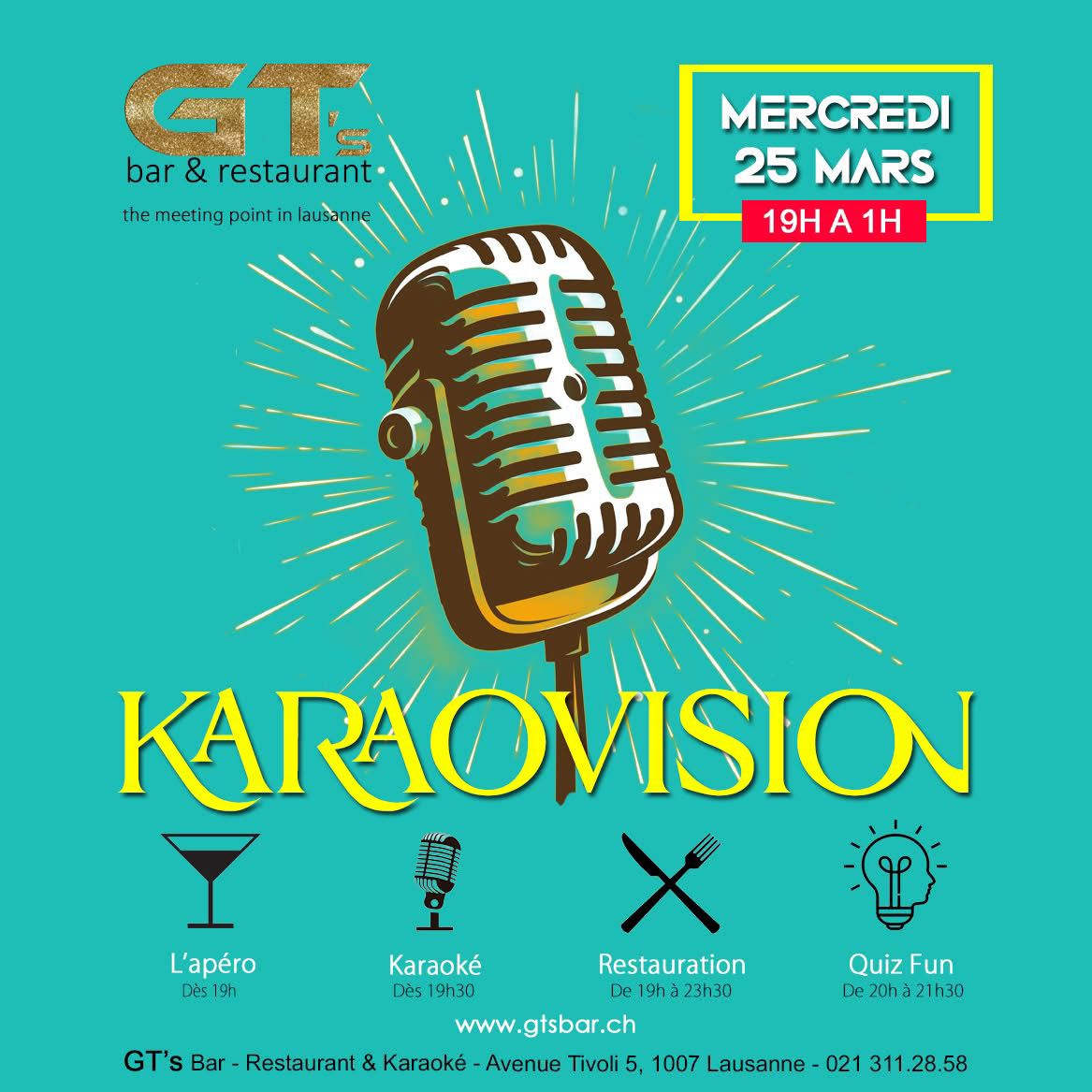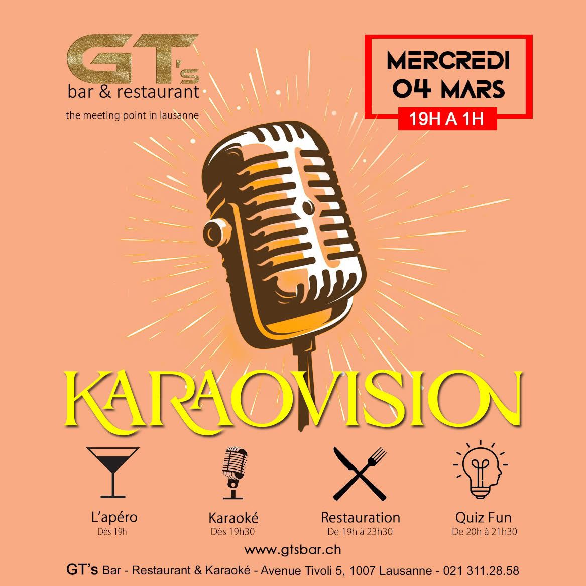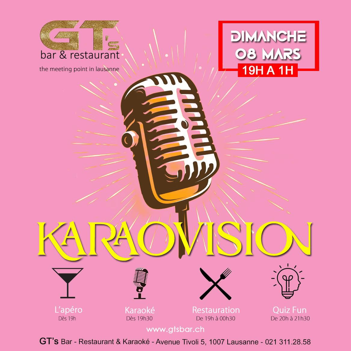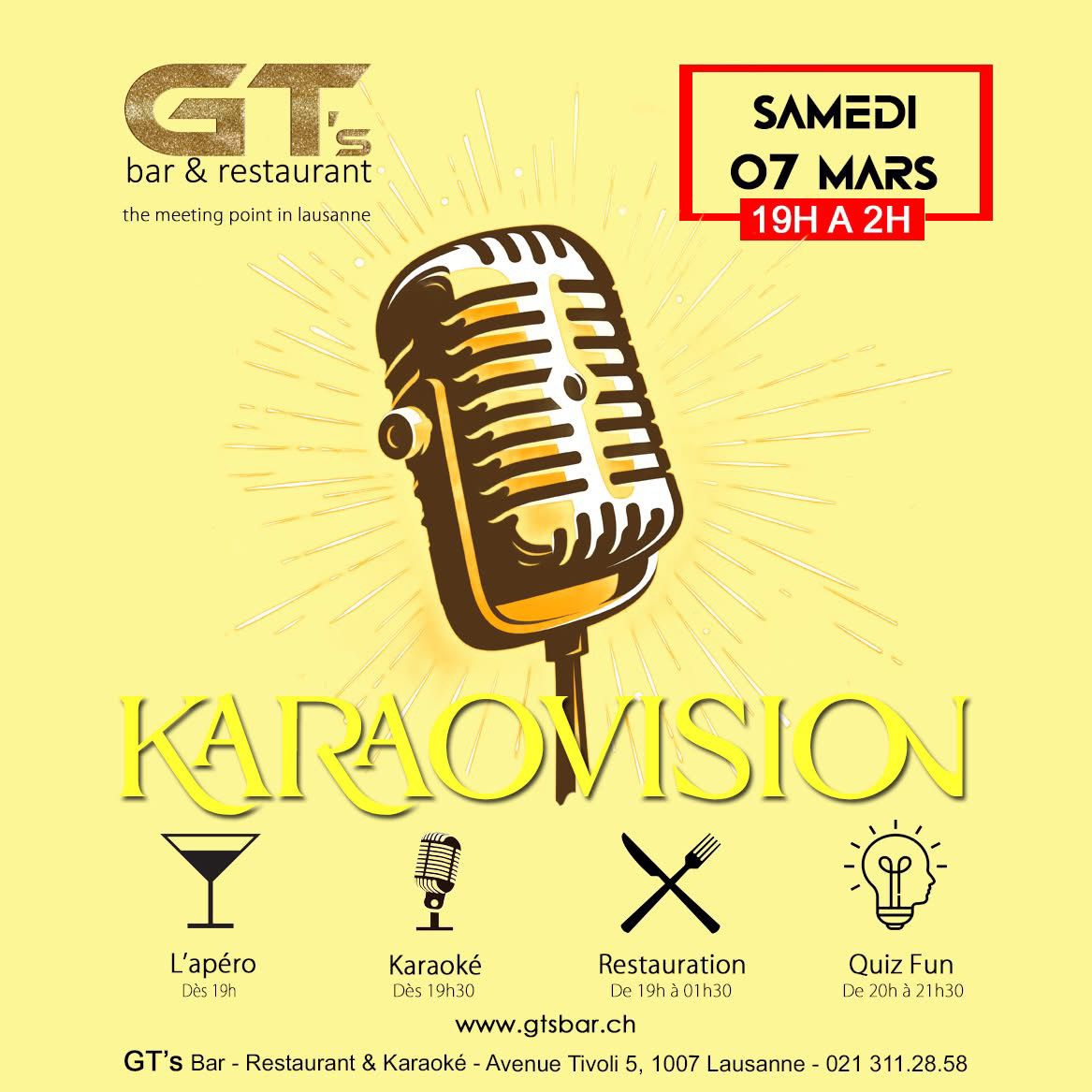 ⚠️ FERMETURE EXCEPTIONNELLEBonjour,Le GT’s Bar, Restaurant & Karaoké est exceptionnellement fermé. Toutes les réservations sont annulées.📅 RÉOUVERTURE :VENDREDI 26 DÉCEMBRE dès 17hMerci de votre compréhension et à très vite !